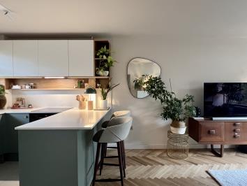 Bathroom Extractor fan. Heated towel rail. Rain fall shower. Shaver point. Walk-in shower. Washbasin with mixer tap. Toilet. Rectangular room. Underfloor heating. Storage. Recently Modernised. Mirror. Porcelain Tiles to floor. Windows to rear. Kitchen Fitted with a matching range of base & eye level units. Including matching breakfast bar. Appliances are Integrated. Appliances by Bosch. Counter tops - Quartz. Dishwasher. Extractor hood Overhead. Fully fitted kitchen. Hob - Induction. U-Shaped room. Underfloor heating. Recently Modernised. Porcelain Tiles to floor. Windows to rear. Living room Lounge/Dining Room. Rectangular room. Herringbone Parquet floor. Door to front. Windows to front. Bedroom Rectangular room. Herringbone Parquet floor. Windows to front. Utility cupboard Counter tops - Wood. Tumble Dryer. Washing machine. Rectangular room. Storage. Porcelain Tiles to floor.