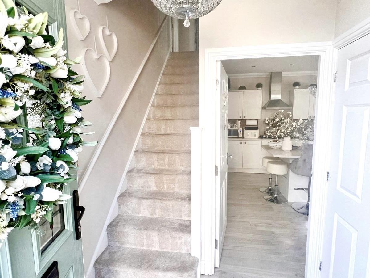 Entrance hall. Staircase leading to upper floors. Laminate flooring. Cornicing to ceiling. Entrance door. Pendant lights. Central heating radiators.