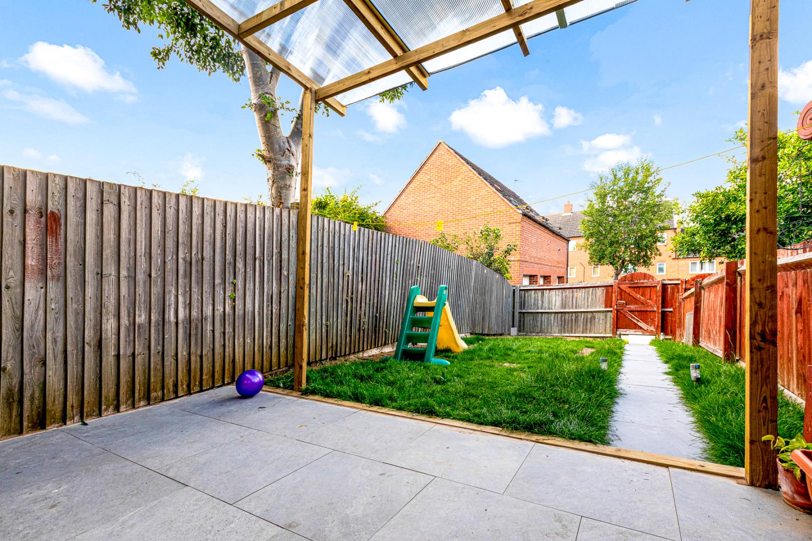 Fenced Rear Garden With Lawn And Slabbed Patio