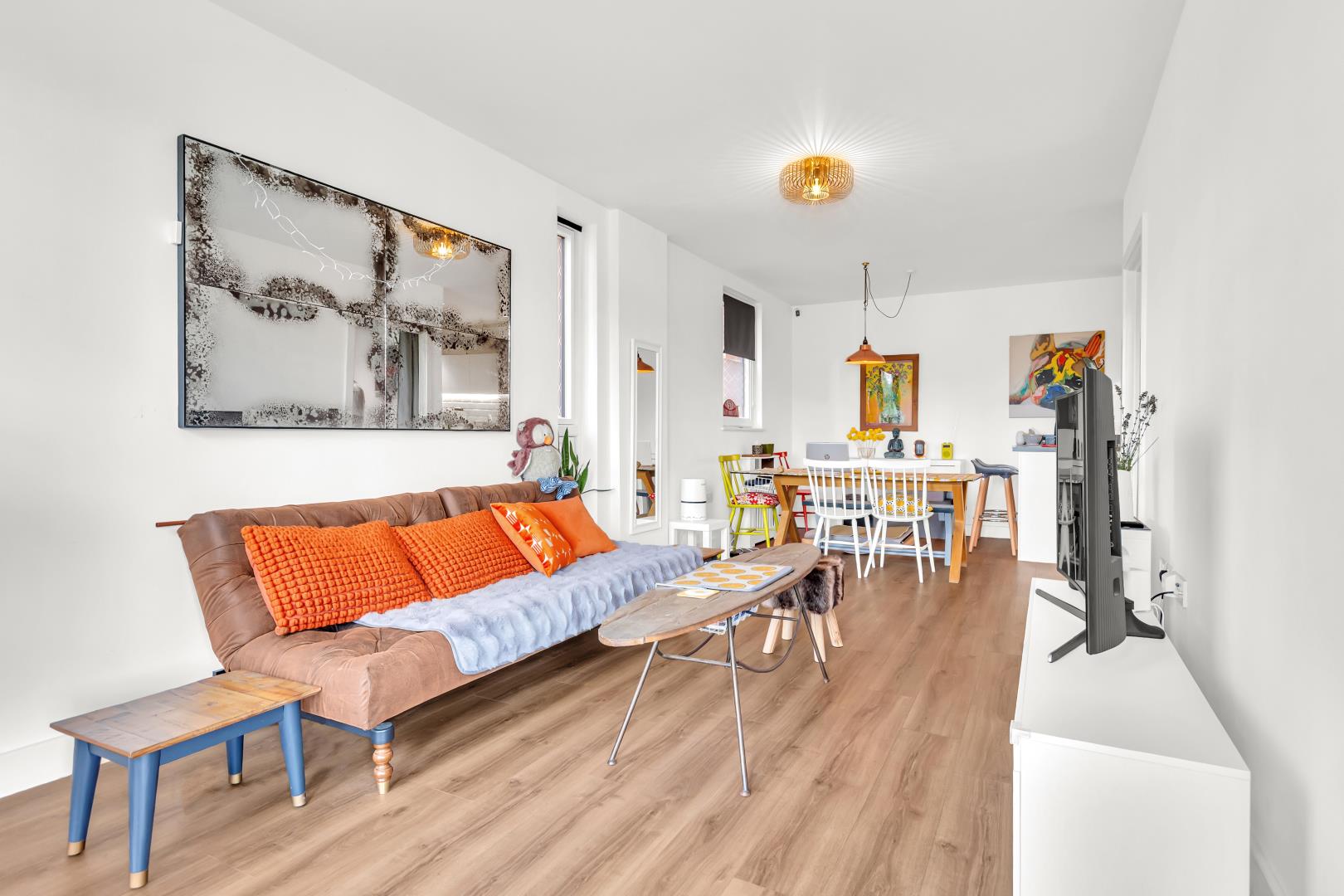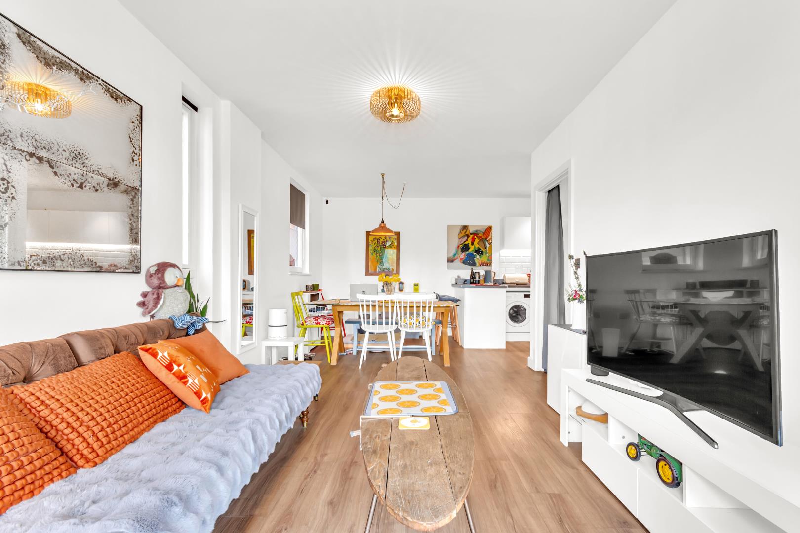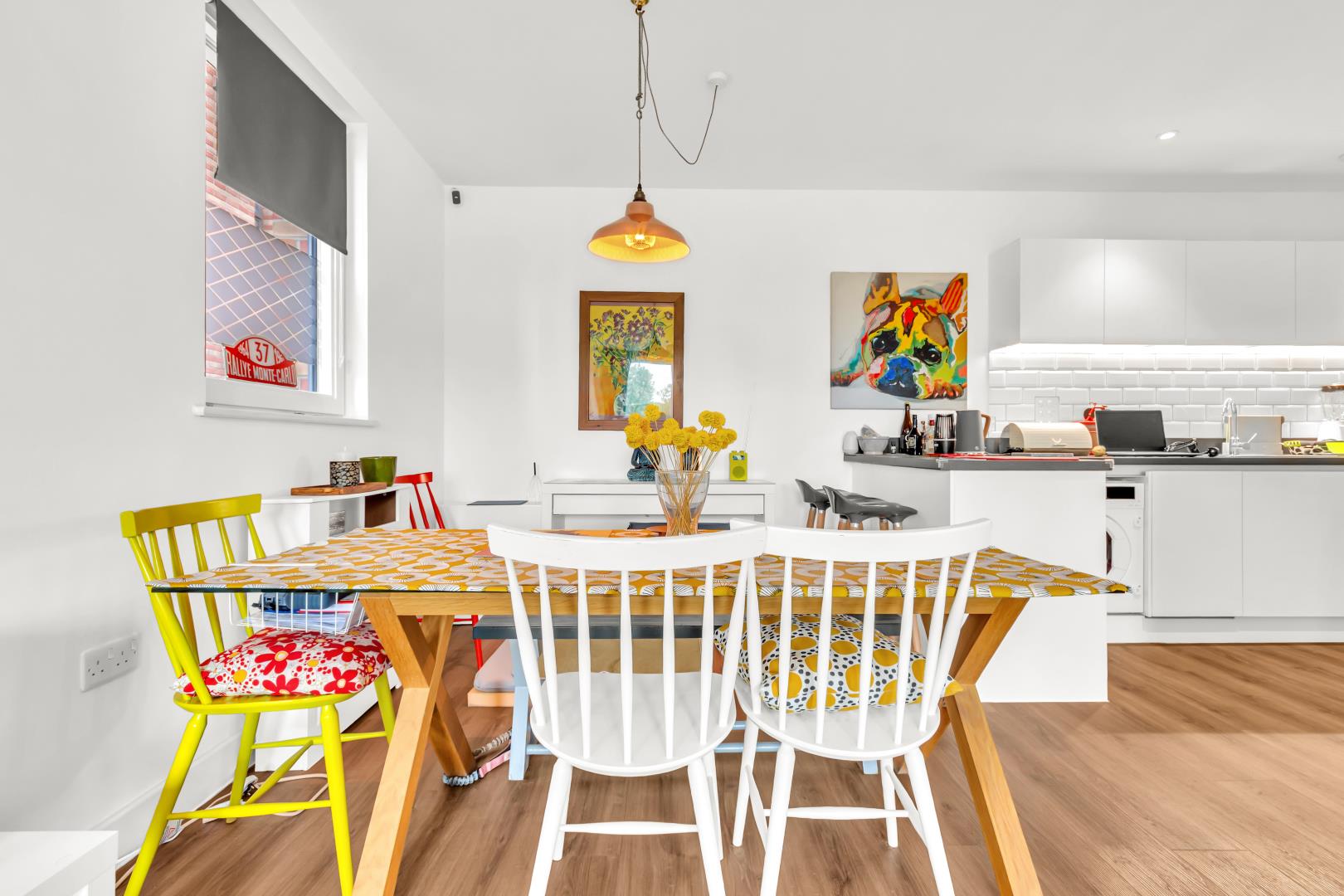 Finally to the open access to the lounge/ diner kitchen with the lounge providing access to the balcony. This area offers double windows with views over Finsbury Park, a dining space to host guests and a breakfast bar backing onto the kitchen. The kitchen has an integrated washer/ dryer, integrated dishwasher, integrated fridge freezer and electric oven/ hob.