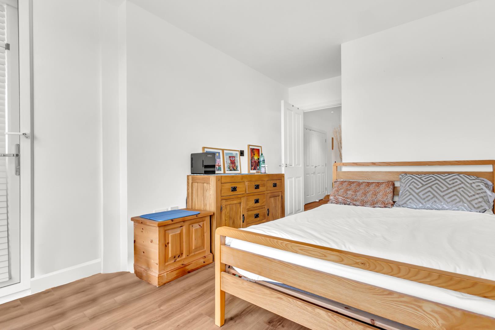 To the middle of the three bedrooms is the guest bedroom/ study, this room also has a window looking onto the balcony/ Finsbury Park.