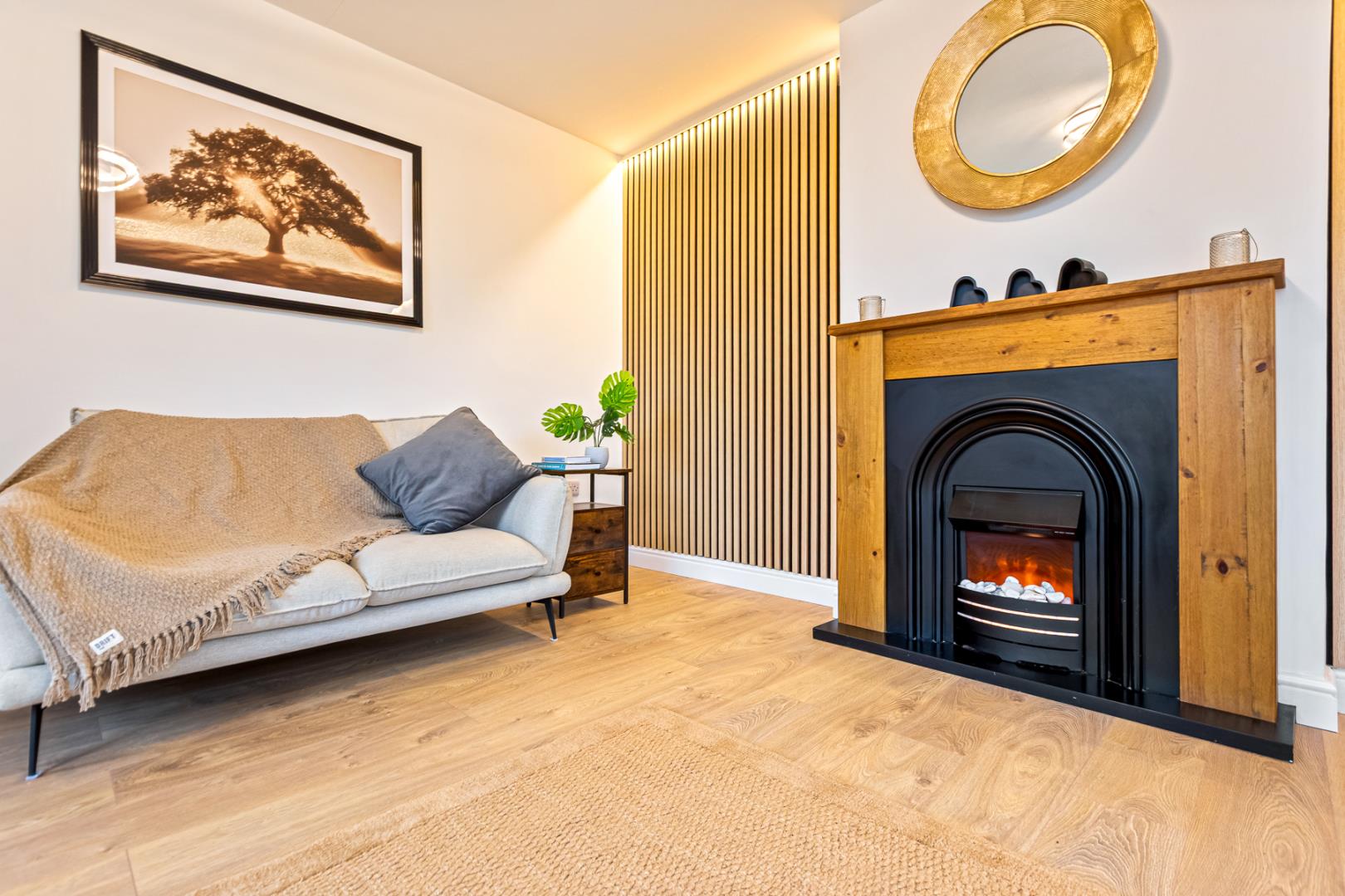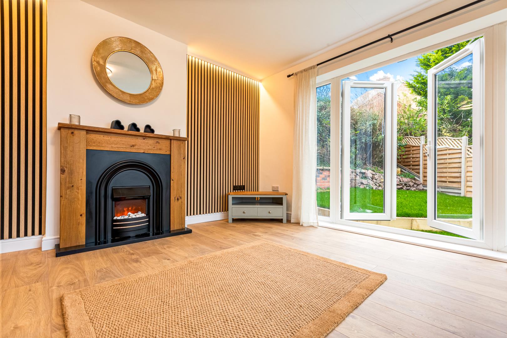 Elegant Sitting Room With Feature Fireplace & Garden Access