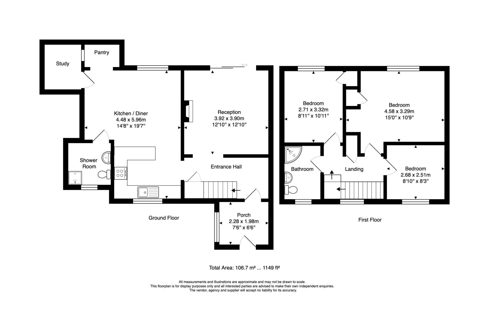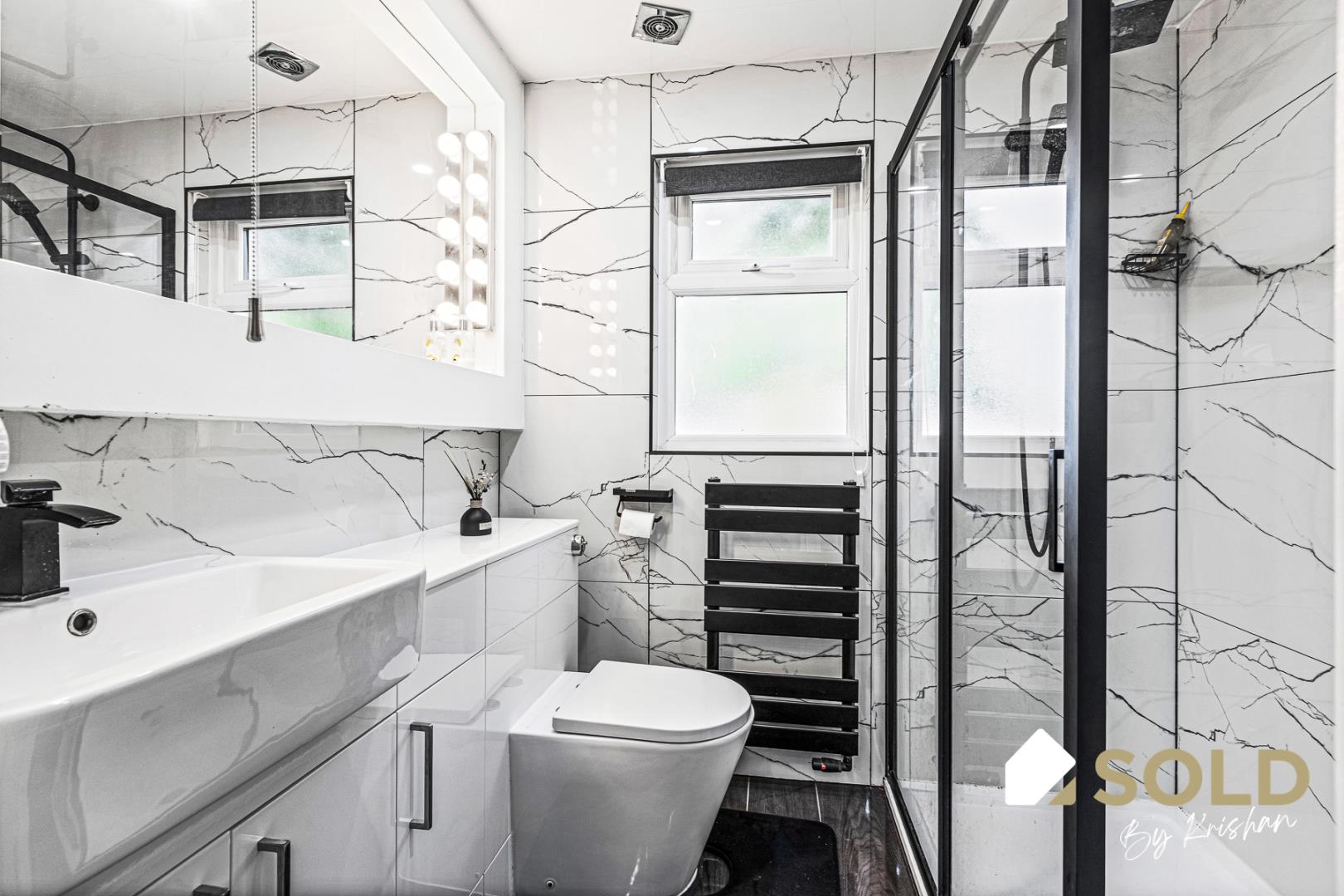 Upstairs, you’ll find three well-proportioned bedrooms and a stylish three-piece shower room. The fully boarded loft spans the entire footprint of the first floor, providing ample storage or potential for future conversion (subject to planning).